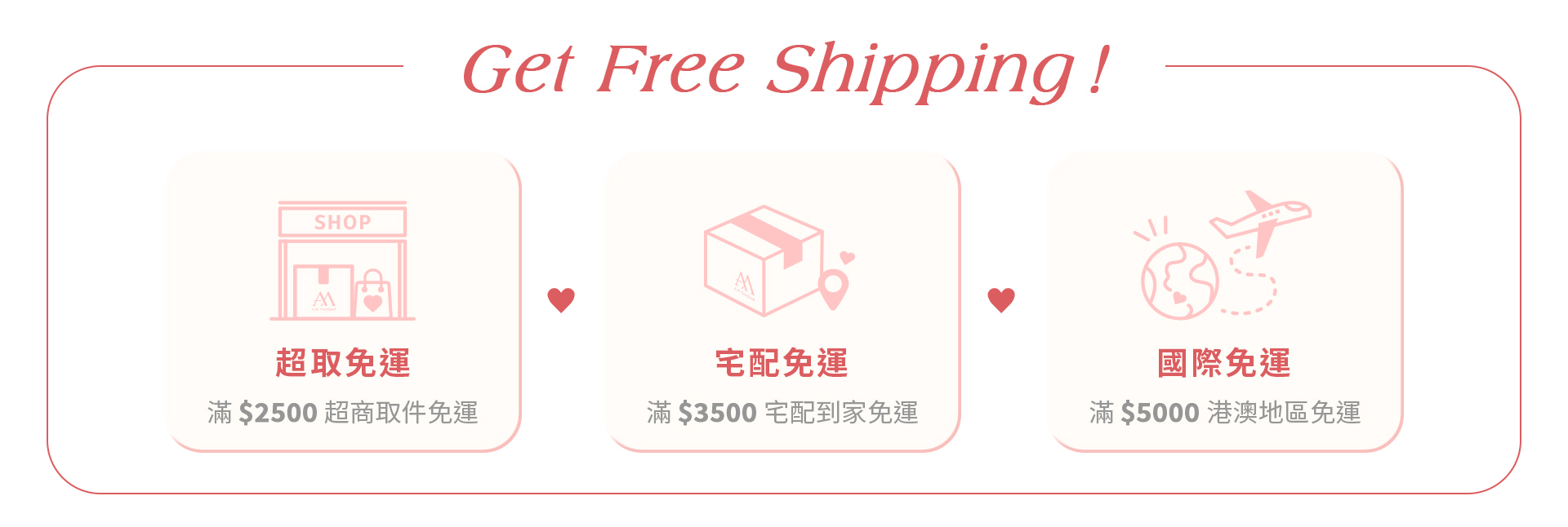 超取 $2500 免運|宅配 $3500 免運|港澳 $5000 免運
