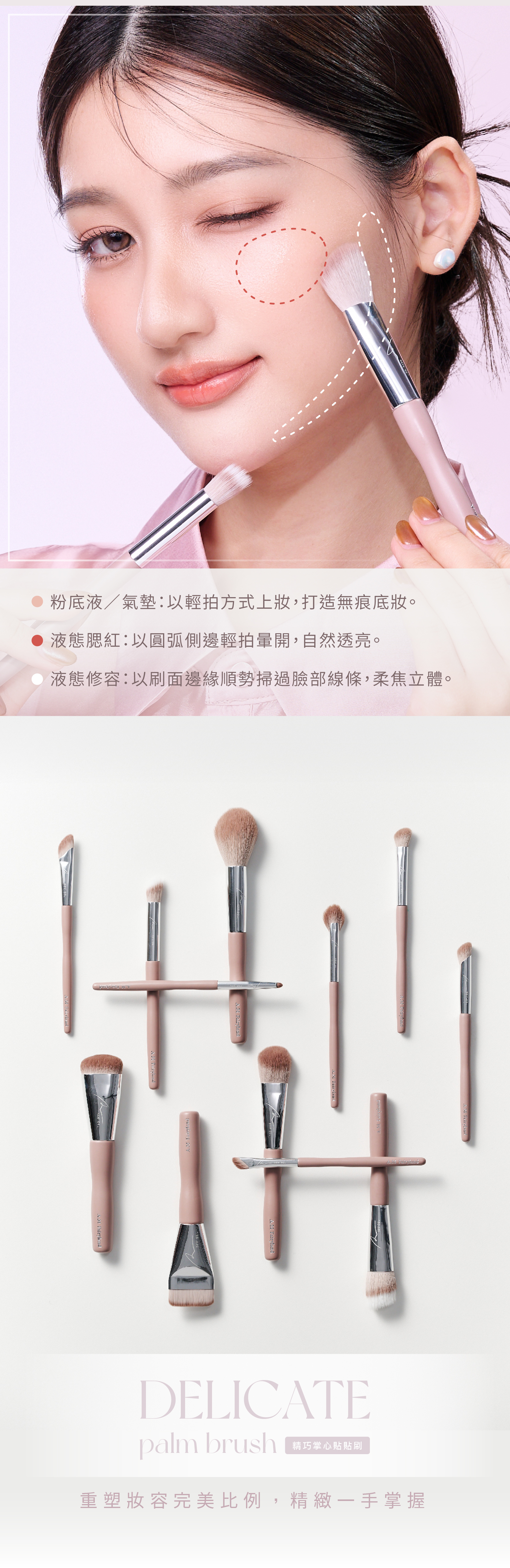 粉底、腮紅、修容,一拍到位。